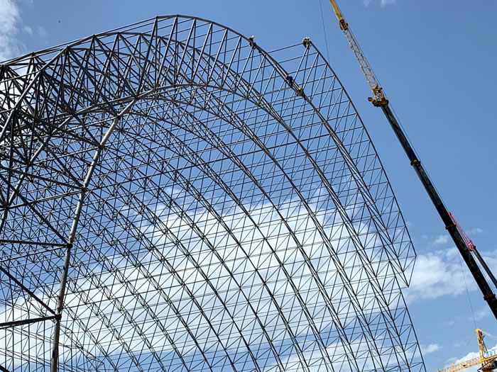 (2)网架加工前应对现场尺寸进行复测,确认无误后方可进行加工、安装;网架制作、运输、安装应遵守《空间网格结构技术规程》JGJ7-2010、《钢网架老河口螺栓球节点》JG/T 10-2009、《钢网架老河口螺栓球节点用高强度螺栓》 GB/T 16939-2016、《老河口钢结构老河口工程老河口施工规范》 GB50755-2012、《老河口钢结构老河口工程施工质量验收标准》 GB50205-2020。
